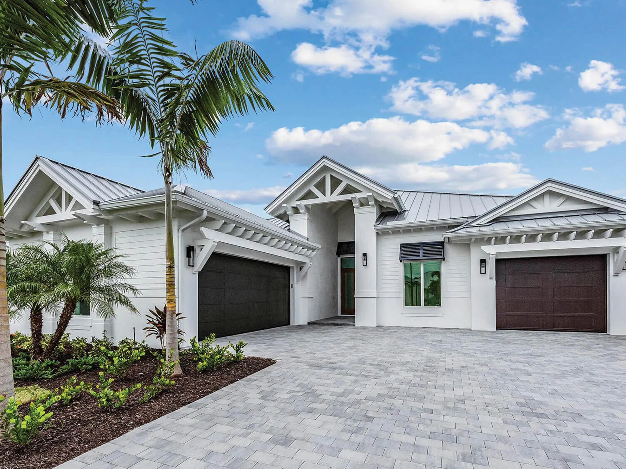 Relaxed tropical feel with metal roofing, clean lines and lush landscaping